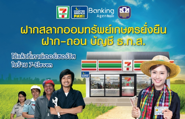 บริการใหม่!! ฝากสลากออมทรัพย์ เกษตรยั่งยืน ฝาก-ถอน บัญชี ธ.ก.ส. ชำระบิล ที่เคาน์เตอร์เซอร์วิส ในร้าน 7-Eleven ได้แล้ว