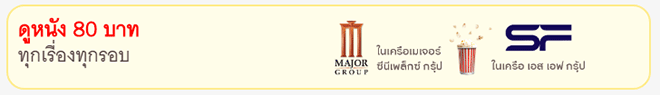 รับสิทธิ์ซื้อบัตรชมภาพยนตร์ 1 ที่นั่ง ราคา 80 บาท ทุกเรื่องทุกรอบ - ในเครือเมเจอร์ ซีนีเพล็กซ์ กรุ๊ป (จำกัด 1 สิทธิ์/บัตร/เดือน จำกัด 5,000 สิทธิ์/เดือน รวม 20,000 สิทธิ์ ตลอดระยะเวลาส่งเสริมการขาย)