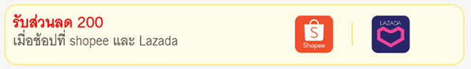 - เงื่อนไขการใช้โค้ดส่วนลดเป็นไปตามที่ Shopee และ Lazada กำหนด จำกัด 1 สิทธิ์/บัตร/เดือน และสามารถใช้โค้ดส่วนลดได้ที่ website และ Application ของ Shopee และ Lazada