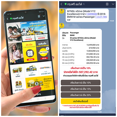 "กรุงศรี ออโต้" ผู้นำธุรกิจสินเชื่อยานยนต์ครบวงจร เครือธนาคารกรุงศรีอยุธยา จำกัด (มหาชน) เล็งเห็นถึงศักยภาพของแอปฯ ยอดนิยมของคนไทยอย่าง LINE ที่จะเพิ่มการให้บริการลูกค้าได้อย่างใกล้ชิดยิ่งขึ้น จึงได้ดำเนินกลยุทธ์เพื่อยกระดับ LINE Official Account ของกรุงศรี ออโต้ สู่บริการแชทให้คำปรึกษาแบบตัวต่อตัว หรือ แชท คอมเมิร์ซ (Chat Commerce) โดยถือเป็นผู้ให้บริการสินเชื่อยานยนต์แบรนด์เดียวที่มีบริการนี้ หลังจากเปิดให้บริการไปเมื่อเดือนกรกฎาคม 2561 พบว่า จำนวนลูกค้าที่ติดต่อขอข้อมูลผ่านทาง LINE เพิ่มขึ้นถึง 3 เท่า ภายใน 6 เดือนแรก และมีอัตราเพิ่มขึ้นอย่างต่อเนื่อง