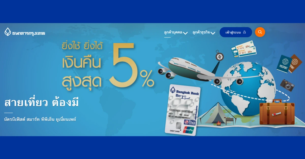 สายเที่ยว ต้องมีรับเงินคืน สูงสุด 5% เพียงใช้จ่ายผ่านบัตรบีเฟิสต์ สมาร์ท ทีพีเอ็น ยูเนี่ยนเพย์ ที่ต่างประเทศ หรือจองตั๋วเครื่องบิน/ที่พักออนไลน์ ผ่าน Agoda, Expedia, Thai Airways, Thai Smile, Air Asia และNok Air ตั้งแต่ 1 ต.ค. 62 - 15 ม.ค. 63
