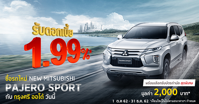 รับดอกเบี้ย 1.99% เมื่อซื้อรถใหม่ NEW MITSUBISHI PAJERO SPORT กับกรุงศรี ออโต้ วันนี้