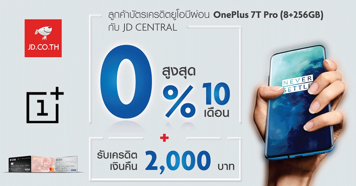 บัตรเครดิตยูโอบีให้คุณผ่อน OnePlus 7T Pro สูงสุด 10 เดือน พร้อมรับเครดิตเงินคืน 2,000 บาท