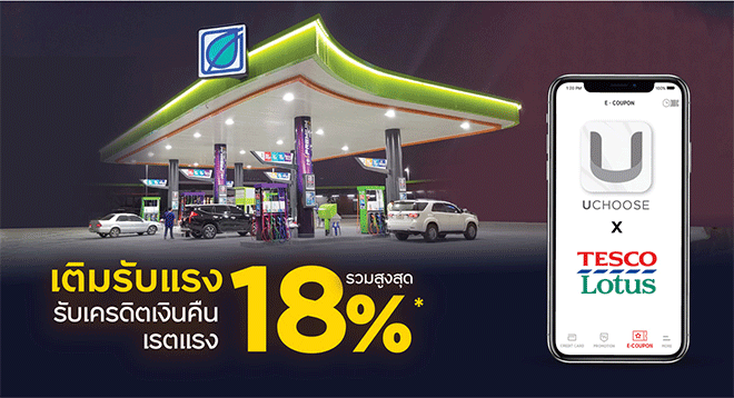 - ***สงวนสิทธิ์การให้ E-COUPON เทสโก้ โลตัส เฉพาะบัตรที่ลงทะเบียนภายในเดือนที่ทำรายการผ่านช่องทางแอปพลิเคชัน UChoose ถูกต้อง และได้รับข้อความตอบกลับยืนยันการเข้าร่วมรายการเท่านั้น ลงทะเบียนเพียงครั้งเดียวรับสิทธิ์ตลอดรายการ เฉพาะยอดเติมนน้ำมันบางจาก ผ่านบัตรเครดิต กรุงศรี ทุกประเภท ในระบบของ Visa, Master Card และ JCB เท่านั้น