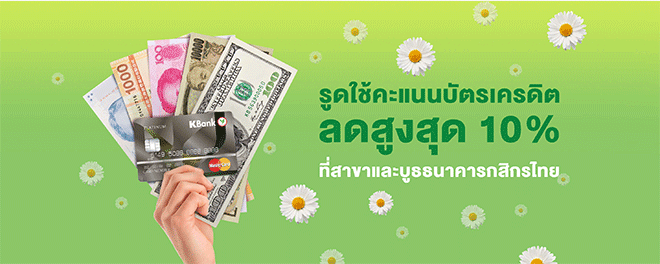 - บัตรฯ ที่ไม่มีคะแนนสะสม (บัตรเครดิตไทเทเนียมกสิกรไทย) บัตรเครดิตนิติบุคคล บัตรเครดิตเพื่อธุรกิจ ไม่สามารถร่วมรายการได้