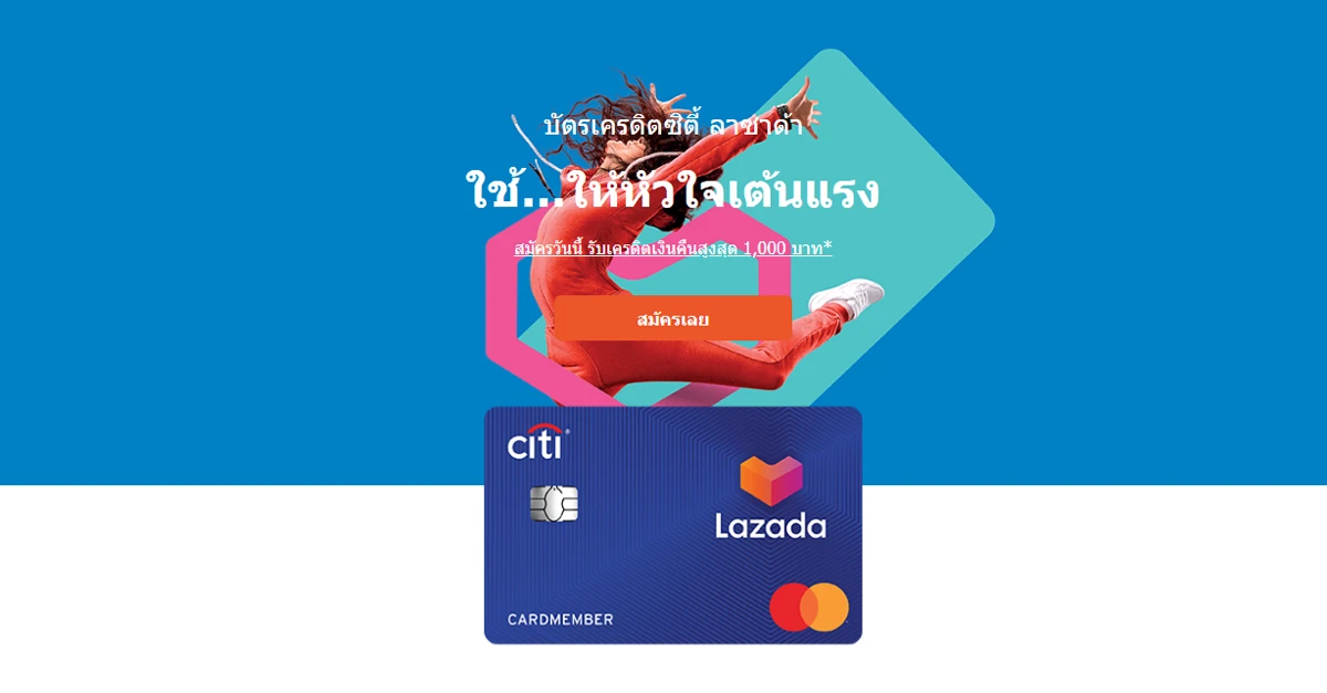 บัตรเครดิตซิตี้ ลาซาด้า ใช้...ให้หัวใจเต้นแรง สมัครวันนี้ รับเครดิตเงินคืนสูงสุด 1,000 บาท