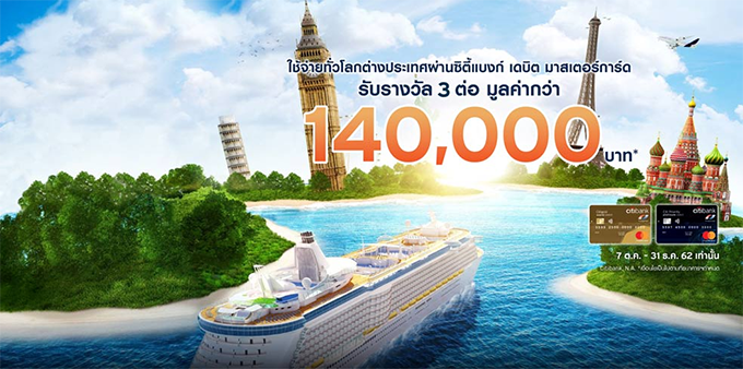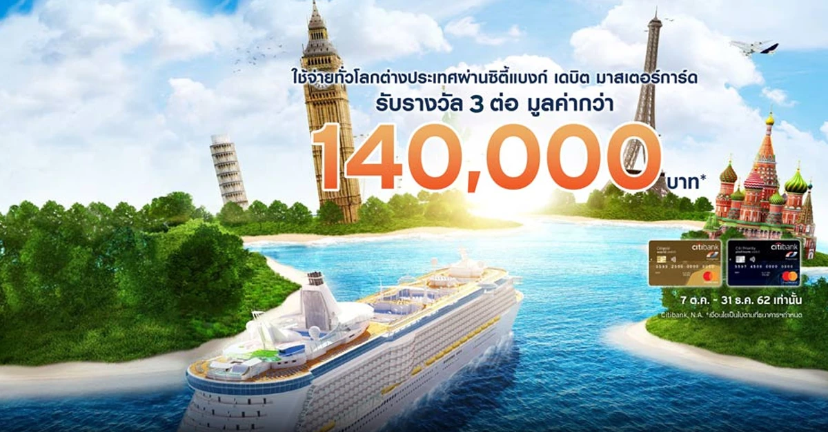 ใช้จ่ายทั่วโลกต่างประเทศผ่านซิตี้แบงก์ เดบิต มาสเตอร์การ์ด รับรางวัล 3 ต่อ มูลค่ากว่า 140,000 บาท
