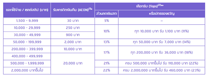 - โปรดตรวจสอบรายละเอียดเพิ่มเติมที่จุดขาย, www.aeon.co.th และสื่อประชาสัมพันธ์อื่นของบริษัทฯ