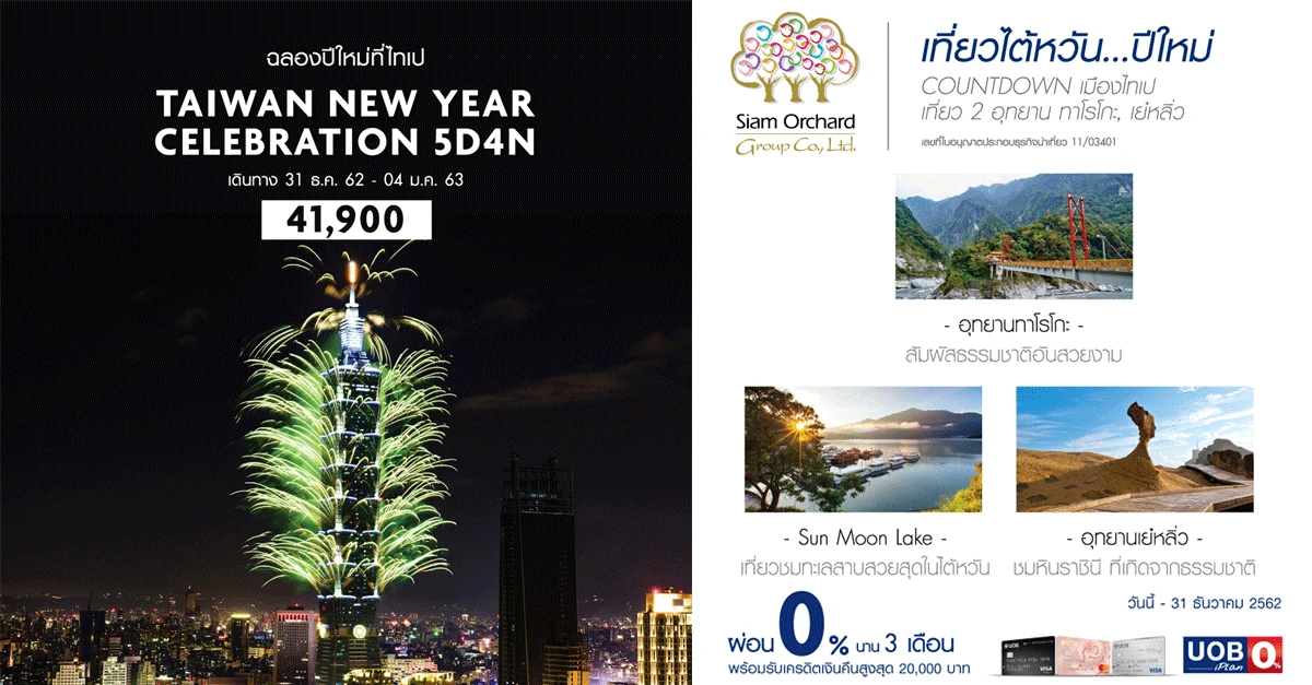 เที่ยวไต้หวัน Countdown ปีใหม่กับบัตรเครดิต UOB ผ่อน 0% พร้อมรับเครดิตเงินคืนสูงสุด 20,000 บาท