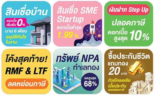 หมายเหตุ - สินเชื่อบุคคล สินเชื่อรถยนต์ กองทุนรวม ประกันชีวิตประกันภัย หลักทรัพย์ บัญชีเงินฝาก บัตรเดบิต บัตรเครดิต บริการทางอิเล็กทรอนิกส์ Plan Your Money สมัครตามเงื่อนไข รับฟรีของกำนัลมากมาย