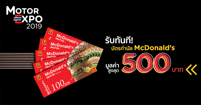 >> รับทันที! บัตรกำนัล McDonald's มูลค่า 200 บาท เมื่อชำระค่าจองรถหรืองานบริการ ผ่านบัตรฯ ครบ 5,000 บาทขึ้นไป/เซลส์สลิป*