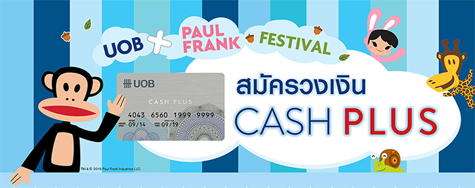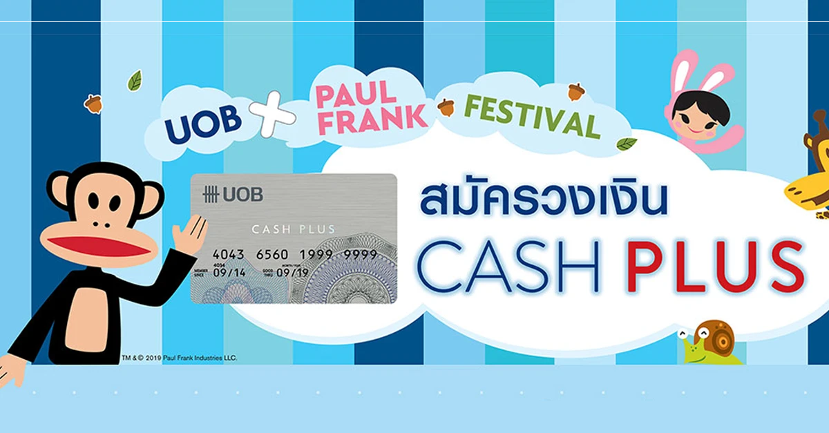 - สำหรับลูกค้าที่กดเงินสดผ่านบัตรยูโอบี แคชพลัส 1 ครั้ง ภายใน 60 วัน นับจากวันที่ธนาคารอนุมัติวงเงิน รับเพิ่มแก้วน้ำ Paul Frank มูลค่า 490 บาท และปากกา Paul Frank 1 ชุด (3 ด้าม) มูลค่า 390 บาท โดยธนาคารจะจัดส่งของกำนัลให้ท่านตามที่อยู่ในใบแจ้งยอดบัญชีภายใน 60 วัน นับจากวันที่ท่านกดเงินสดผ่านบัตร จำกัดการรับของกำนัล 1 เซต/ผู้ถือบัตร 1 ท่าน/ตลอดรายการ