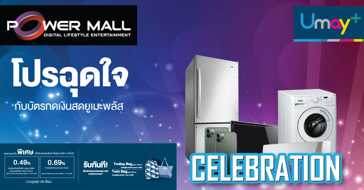 • สำหรับ Smart Phone ทุกรุ่น ทุกยี่ห้อ ไม่ต้องซื้อพร้อมแพ็กเกจ ผ่อนยาว 48 เดือน กับดอกเบี้ยพิเศษสุด ใน Power Mall ที่ The Mall ทุกสาขา