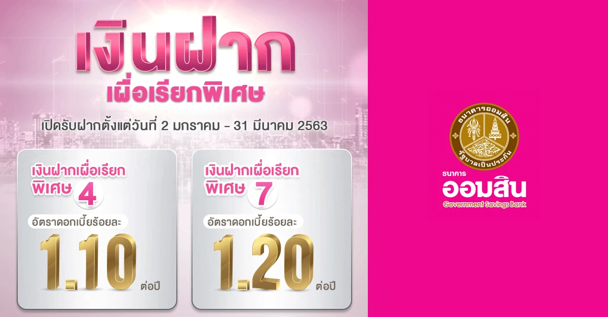 | ประเภทเงินฝาก | อัตราดอกเบี้ย (%ต่อปี) |