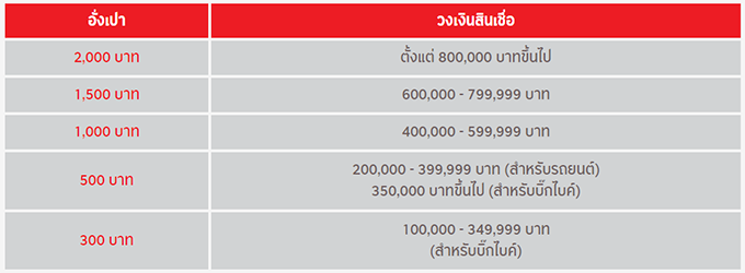 - ขอสงวนสิทธิ์ในการเปลี่ยนแปลงของกำนัลที่มีมูลค่าเทียบเท่าโดยไม่ต้องแจ้งให้ทราบล่วงหน้า ขอสงวนสิทธิ์ในการกำหนดวงเงิน อัตราดอกเบี้ย ระยะเวลาผ่อนชำระ และผู้ค้ำประกัน โดยพิจารณาจากยี่ห้อและรุ่น ปีจดทะเบียนของรถรวมทั้งรายได้และสถานภาพของผู้สมัครภายใต้เกณฑ์การพิจารณาสินเชื่อ