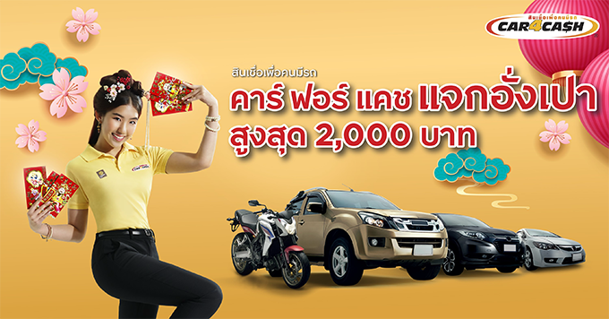 คาร์ ฟอร์ แคช แจกอั่งเปา สูงสุด 2,000 บาท...เอาใจเจ้าของรถยนต์และบิ๊กไบค์ ฉลองตรุษจีน รับวงเงินสูง ดอกเบี้ยต่ำ และอั่งเปา มูลค่าสูงสุด 2,000 บาท