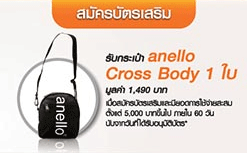 สำหรับผู้สมัครบัตรเสริมรายใหม่ : รับกระเป๋า anello Cross Body มูลค่า 1,490 บาท เมื่อมียอดการใช้จ่ายสะสมตั้งแต่ 5,000 บาทขึ้นไป ภายในระยะเวลา 60 วัน นับจากวันที่ได้รับการอนุมัติ โดยธนาคารจะจัดส่งของกำนัลให้ภายใน 90 วัน นับจากวันใช้จ่ายครบตามหลักเกณฑ์