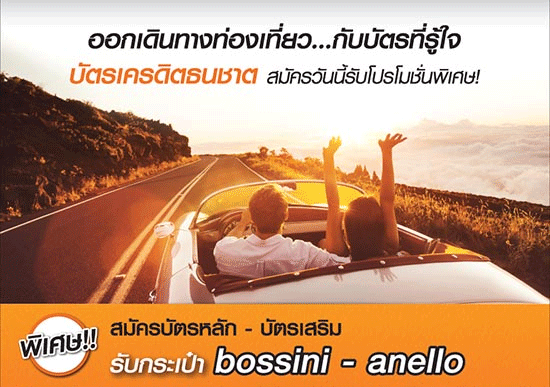 บัตรเครดิตธนชาต วันนี้ รับโปรโมชั่นพิเศษ! สำหรับผู้สมัครบัตรเครดิตรายใหม่ที่สมัครบัตรหลัก - บัตรเสริม รับกระเป๋า bossini - anello เมื่อใช้จ่ายตามเงื่อนไขที่ธนาคารกำหนด