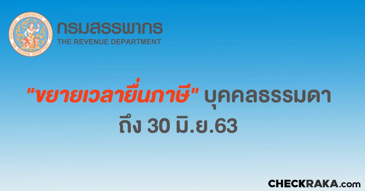 กรมสรรพากร "ขยายเวลายื่นภาษี" บุคคลธรรมดา ถึง 30 มิ.ย. 63