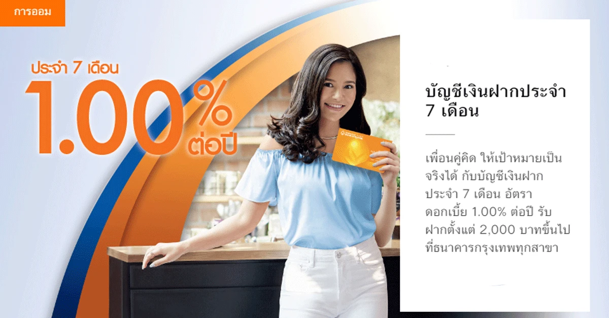 บัญชีเงินฝากประจำ 7 เดือน จาก ธนาคารกรุงเทพ เพื่อนคู่คิด ให้เป้าหมายเป็นจริงได้