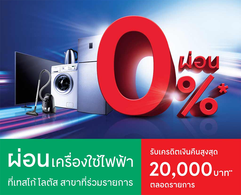 ผ่อนเครื่องใช้ไฟฟ้า 0% ผ่านบัตรสินเชื่อเทสโก้ โลตัส พรีเมียร์ พร้อมรับเครดิตเงินคืนสูงสุด 20,000 บาท