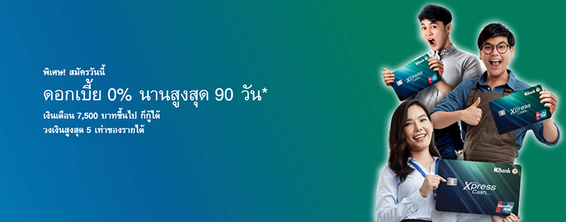พิเศษ! สมัครบัตรเงินด่วน Xpress Cash วันนี้...ดอกเบี้ย 0% นานสูงสุด 90 วัน จากกสิกรไทย