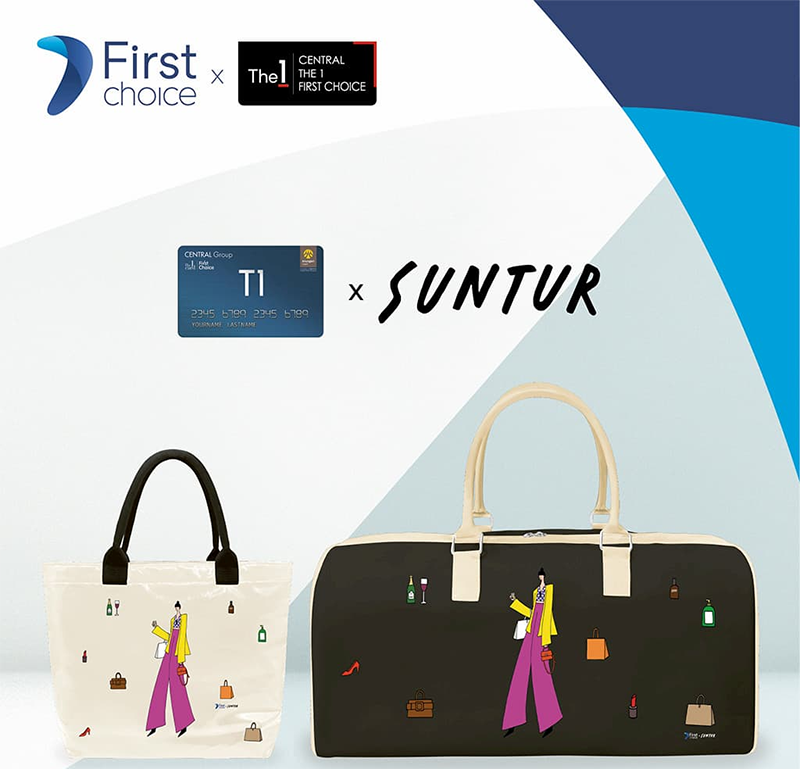 - รับกระเป๋า First Choice X Suntur Tote Bag จำนวน 1 ใบ มูลค่า 1,290 บาท เมื่อมียอดผ่อนสินค้าสะสม ตั้งแต่ 5,000 บาทขึ้นไป ผ่านบัตรฯ ณ ร้านค้าในเครือ เซ็นทรัล กรุ๊ป ที่ร่วมรายการ ภายใน 45 วัน นับจากวันที่ได้รับการอนุมัติ (ไม่รวมการกดเงินสด) หรือ