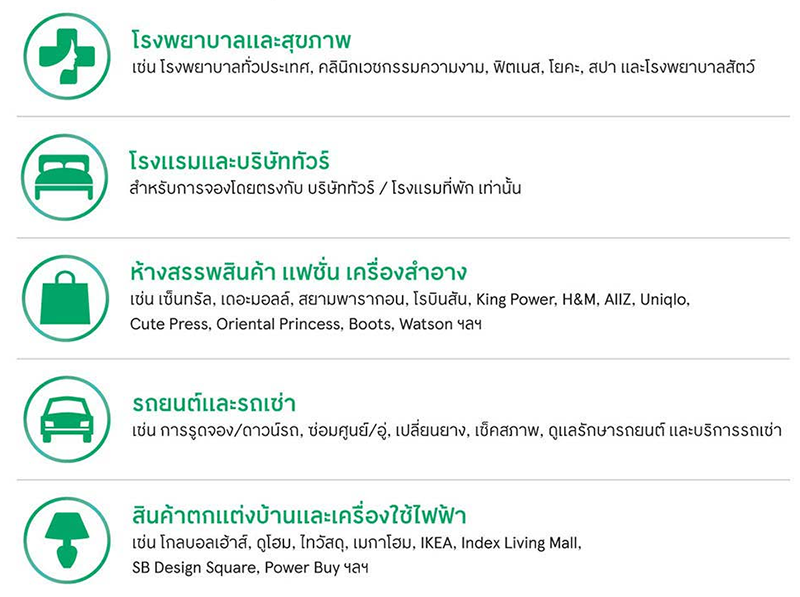 3.3 หมวดห้างสรรพสินค้า (อาทิ ห้างเซ็นทรัล, เดอะมอลล์, ดิ เอ็มโพเรียม, ดิ เอ็มควอเทียร์, สยามพารากอน, โรบินสัน, King Power รวมถึงรายการใช้จ่ายออนไลน์ผ่านเว็บไซต์ของห้างสรรพสินค้าดังกล่าว) แฟชั่น และเครื่องสำอาง (อาทิ H&M, AIIZ, Uniqlo, Cute Press, Oriental Princess)