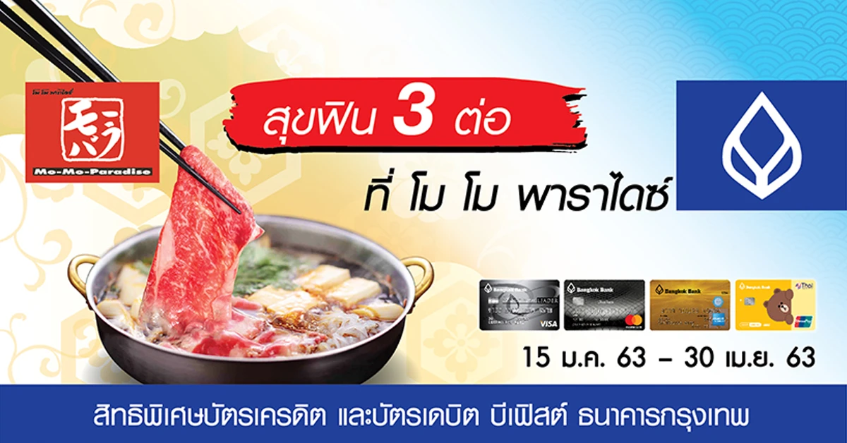 สุขฟิน 3 ต่อ ที่ โม โม พาราไดซ์ กับบัตรเครดิตธนาคารกรุงเทพ