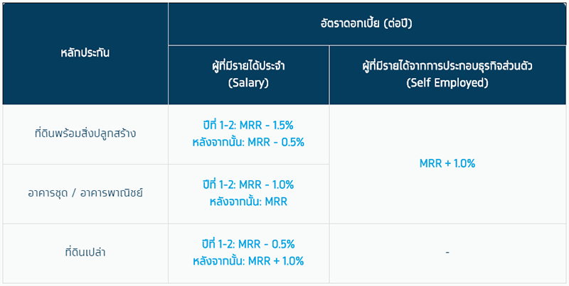 - สามารถกู้ร่วมได้ โดยอายุผู้กู้หรือผู้กู้ร่วม เมื่อรวมกับระยะเวลาให้กู้ ต้องไม่เกิน 60 ปี