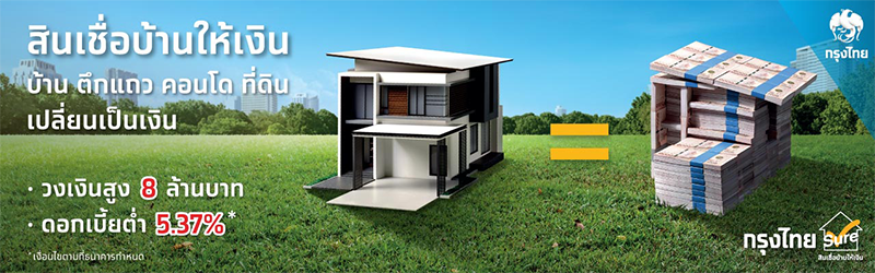สินเชื่อกรุงไทยบ้านให้เงิน ดอกเบี้ยต่ำ 5.37% ต่อปี รับวงเงินสูงสุด 8 ล้านบาท แค่มีบ้านหรือที่ดินก็กู้ง่าย