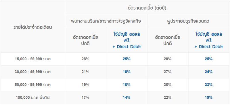 อัตราดอกเบี้ยพิเศษ -3% ทุกเดือน แค่ใช้บัญชี ทีเอ็มบี ออลล์ ฟรี 5 ครั้ง/เดือน + สมัครใช้บริการหักบัญชีอัตโนมัติ (Direct Debit)