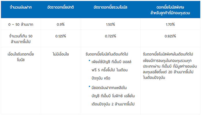 โปรโมชั่นเงินฝากดอกเบี้ยสูง โปรโมชั่นบัญชีเงินฝากทีเอ็มบี โปรโมชั่นบัญชีเงินฝากธนาคารทหารไทย