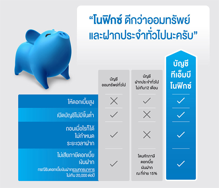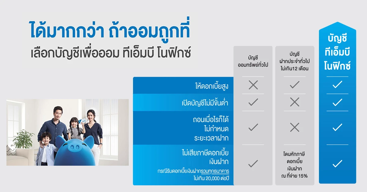 บัญชีเพื่อออม ทีเอ็มบี โนฟิกซ์ ออมให้ถูกที่เพื่อรับดอกเบี้ยที่มากกว่า ดอกเบี้ยสูงสุด 1.50% ต่อปี