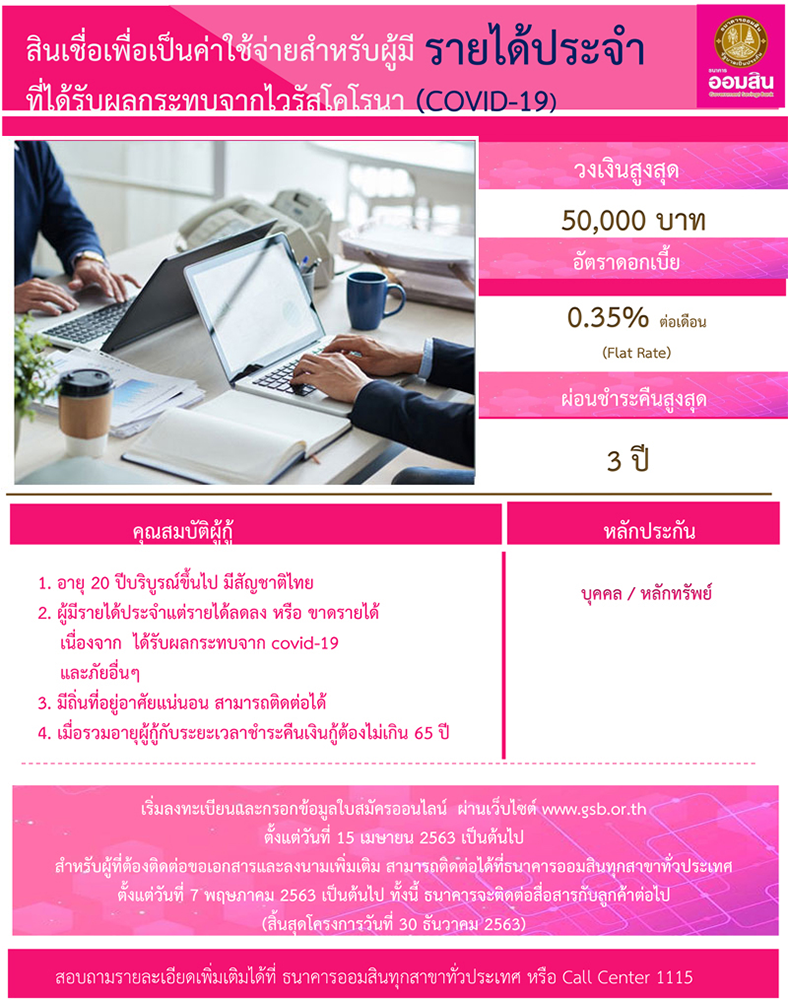 สินเชื่อเพื่อเป็นค่าใช้จ่าย สำหรับผู้ที่ได้รับผลกระทบจากไวรัสโคโรนา (COVID-19)