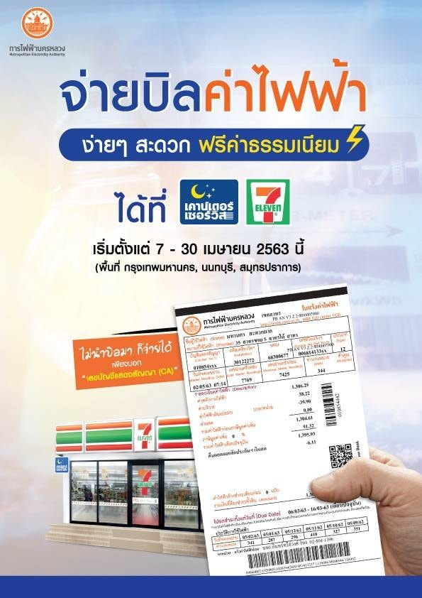 5. จ่ายค่าไฟฟ้าผ่านเคาน์เตอร์ตัวแทนใกล้บ้าน (ตั้งแต่ 7 เม.ย. 2563 เป็นต้นไป)