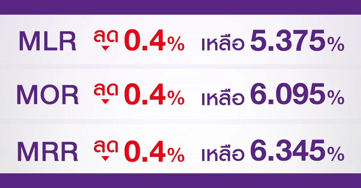 ธนาคารฯ ประกาศปรับลดอัตราดอกเบี้ยเงินกู้ทุกประเภทเพิ่มเติม 0.40% โดยอัตราดอกเบี้ยเงินกู้ลูกค้ารายใหญ่ชั้นดี ประเภทแบบมีระยะเวลา (Minimum Loan Rate) หรือ MLR ปรับลดจาก 5.775% เป็น 5.375% อัตราดอกเบี้ยเงินกู้ลูกค้ารายใหญ่ชั้นดี ประเภทเงินเบิกเกินบัญชี (Minimum Overdraft Rate) หรือ MOR ปรับลดลงจาก 6.495% เป็น 6.095% และอัตราดอกเบี้ยเงินกู้ลูกค้ารายย่อยชั้นดี (Minimum Retail Rate) หรือ MRR ปรับลดลงจาก 6.745% เป็น 6.345% ทั้งนี้ ธนาคารหวังเป็นอย่างยิ่งว่า ภาระดอกเบี้ยที่ลดลงดังกล่าวจะมีส่วนช่วยให้ลูกค้าธุรกิจและลูกค้าสินเชื่อรายย่อยมีต้นทุนทางการเงินที่ลดลง และช่วยให้ลูกค้าสามารถฟันฝ่าวิกฤตนี้ไปได้ในที่สุด