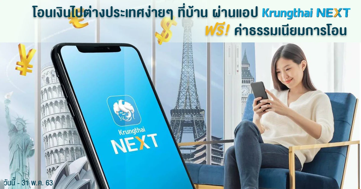 ลูกค้าบุคคลโอนเงินไปต่างประเทศ ผ่านแอปพลิเคชัน Krungthai NEXT และ www.ktbnetbank.com ฟรี!! ค่าธรรมเนียมโอน เพียงเลือก "ผู้รับโอน" เป็นผู้จ่ายค่าธรรมเนียมธนาคารต่างประเทศ