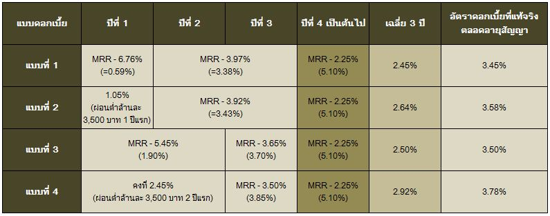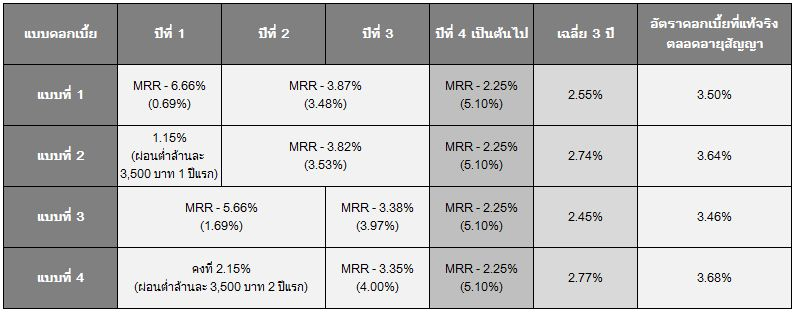 - อัตราดอกเบี้ยที่แท้จริงข้างต้นเป็นเพียงตัวอย่างอัตราดอกเบี้ยสำหรับสินเชื่อที่อยู่อาศัยวงเงิน 3 ล้านบาท อายุสัญญา 10 ปี MRR = 7.350% (ณ วันที่ 14 เม.ย. 63) ที่คำนวณตามเงื่อนไขที่ใช้ในโฆษณาฉบับนี้เท่านั้น ซึ่งอาจมีความแตกต่างตามเงื่อนไขการกู้ยืมของลูกค้าแต่ละราย