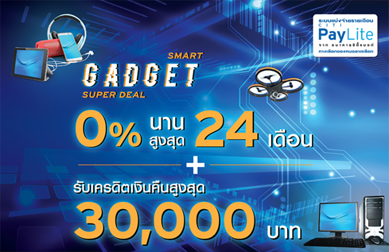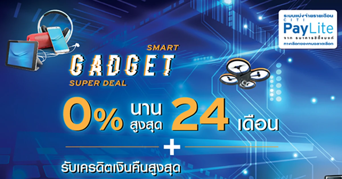 ผ่อน Smart Gadget 0% นานสูงสุด 24 เดือน พร้อมรับเครดิตเงินคืน เมื่อใช้จ่ายผ่านบัตรซิตี้ เรดดี้เครดิต