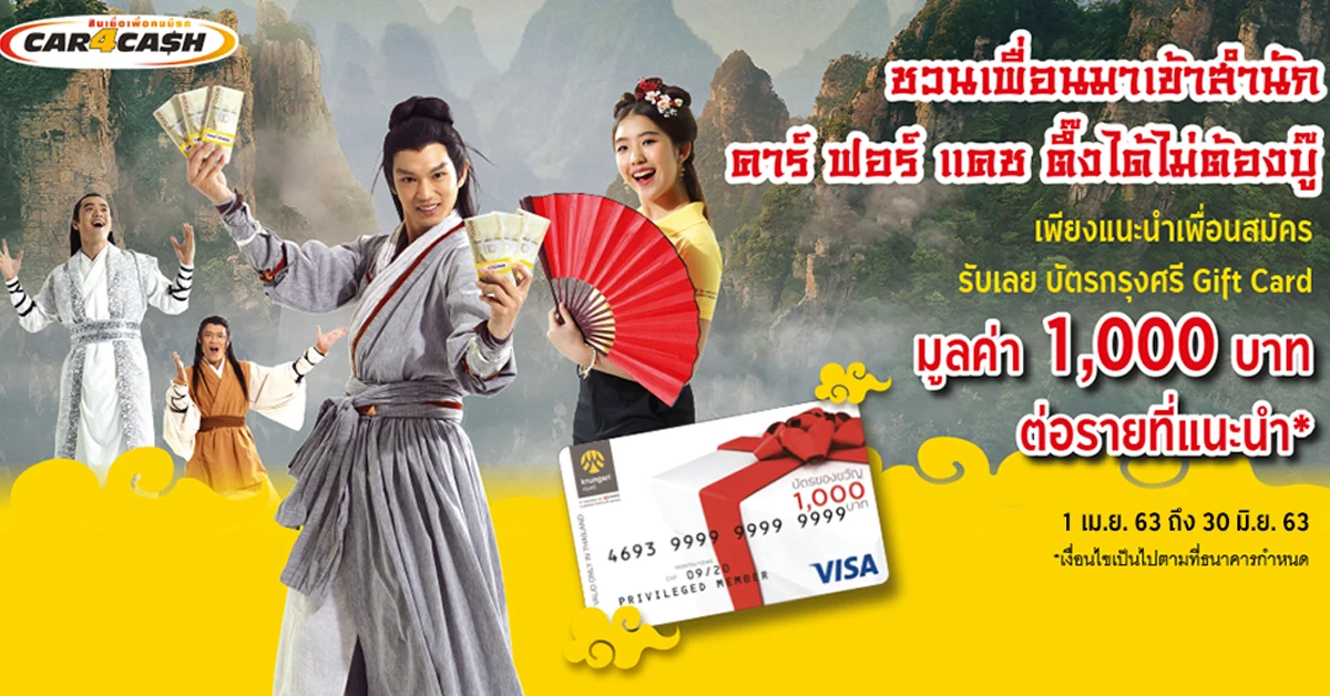 ชวนเพื่อนมาเข้าสำนัก คาร์ ฟอร์ แคช ตึ๊งได้ไม่ต้องบู๊ รับเลยบัตรกรุงศรี Gift Card 1,000 บาท