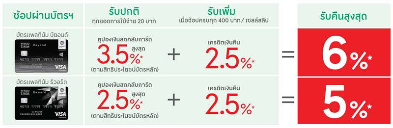 สิทธิพิเศษสำหรับลูกค้า บัตรเครดิตเทสโก้ โลตัส วีซ่า ช้อป 400 บาท รับคืนสูงสุด 6%*