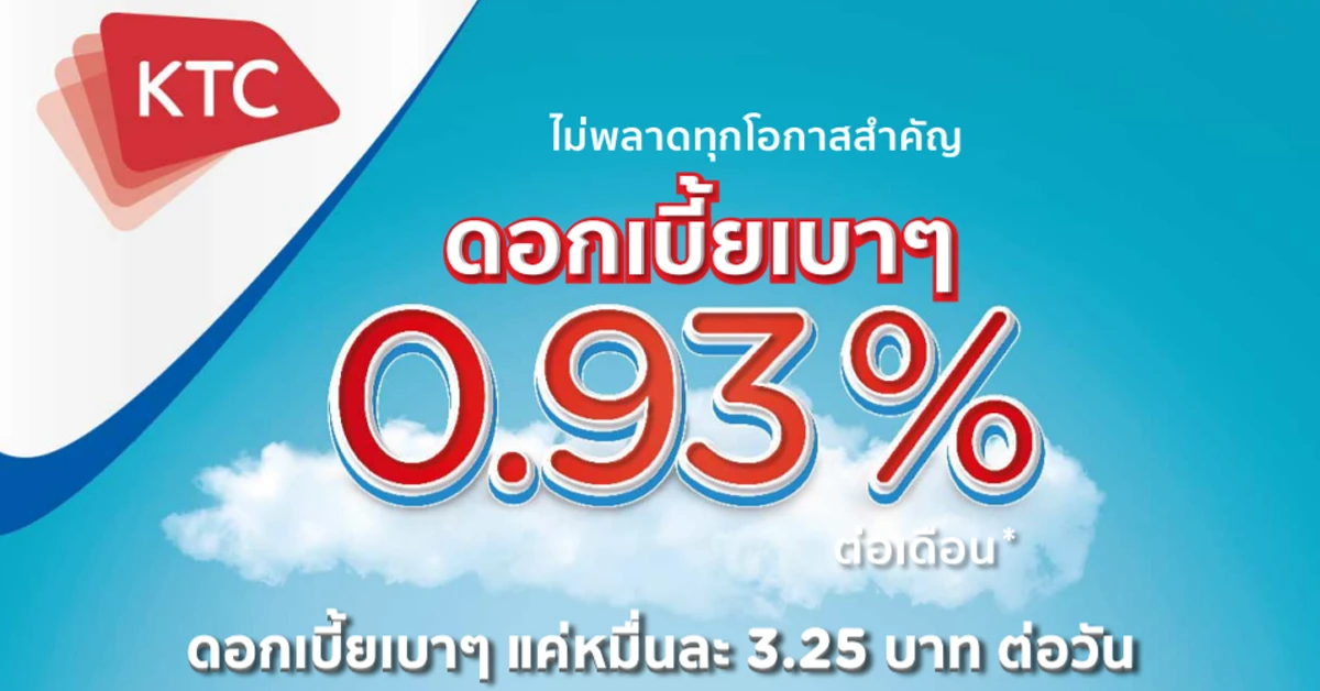 KTC PROUD สมัครวันนี้ รับเงินกู้ดอกเบี้ยต่ำ ดอกเบี้ยเบาสุดๆ เพียง 0.93% ต่อเดือน หรือแค่หมื่นละ 3.25 บาทต่อวัน