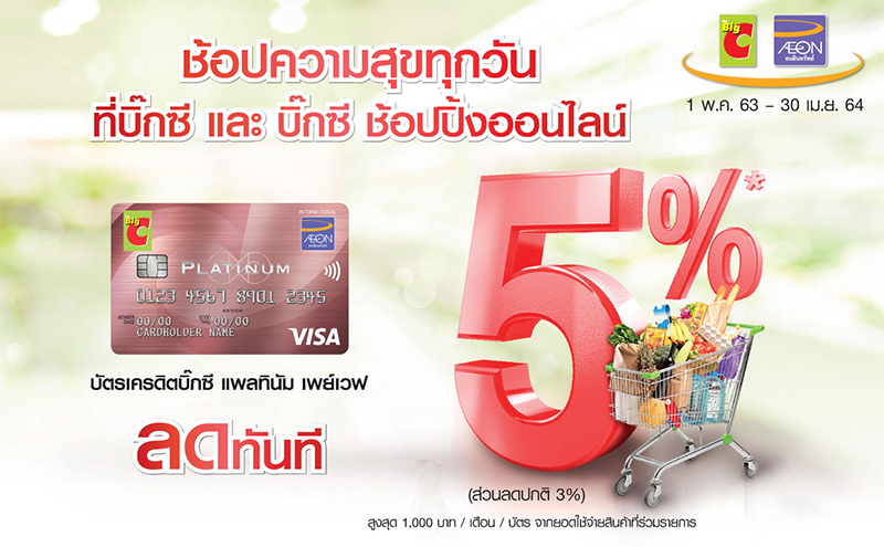 รับส่วนลด 5% ทันที ที่ Big C - ระยะเวลา : 1 พ.ค. 63 - 30 เม.ย. 64