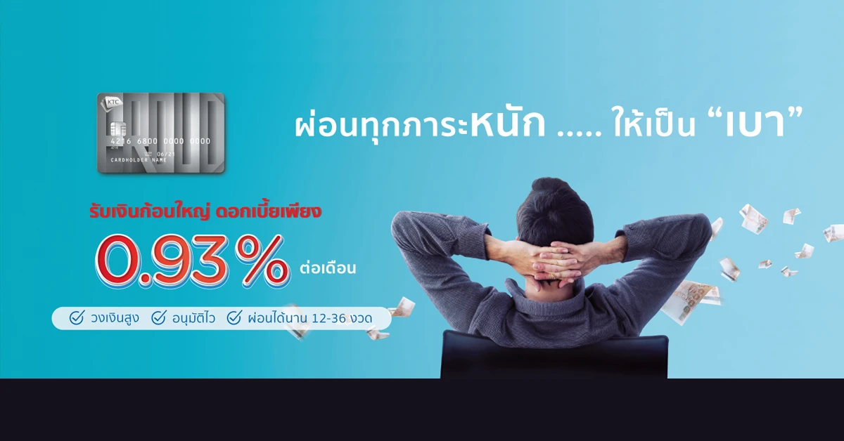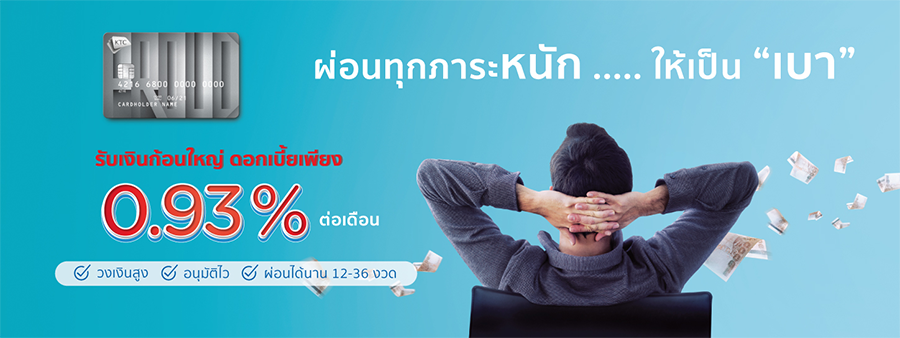 รับเงินกู้ดอกเบี้ยต่ำ อัตราพิเศษ 0.93% ต่อเดือน สำหรับยอดเงินโอนก้อนแรกแบบผ่อนชำระรายงวดตั้งแต่ 50,000 บาทขึ้นไป