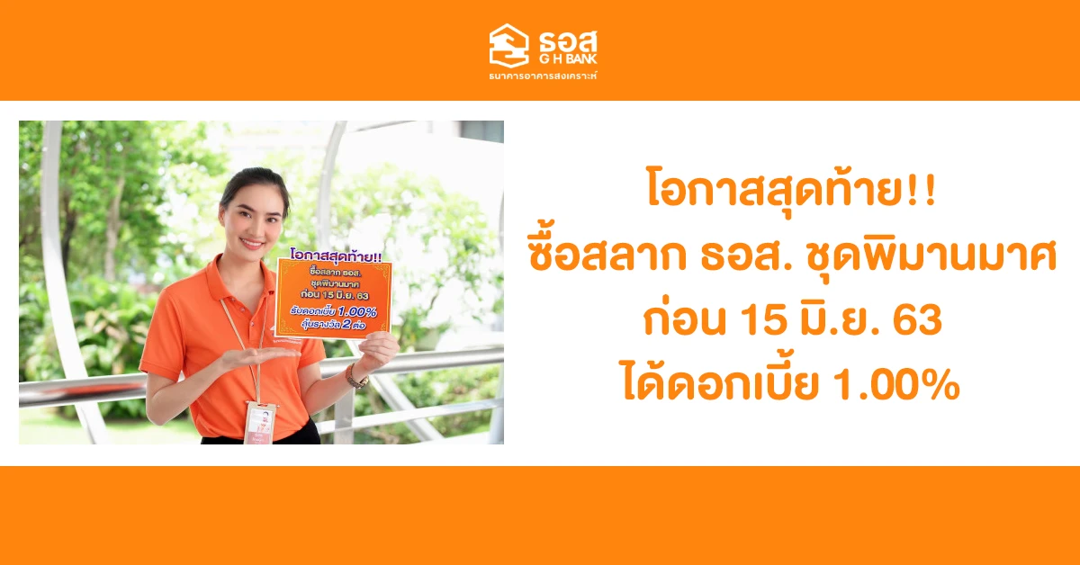 โอกาสสุดท้าย!! ซื้อสลาก ธอส. ชุดพิมานมาศ ก่อน 15 มิ.ย. 63 ได้ดอกเบี้ย 1.00%