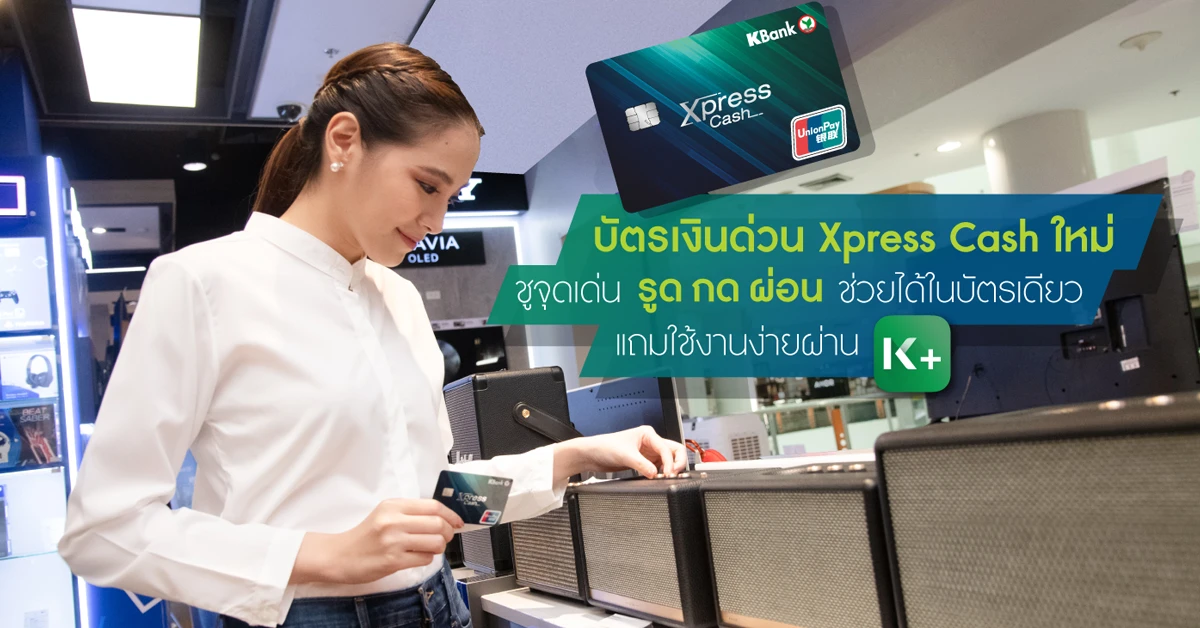 ธนาคารกสิกรไทย เปิดตัวบัตรเงินด่วน Xpress Cash (เอ็กเพรสแคช) ใหม่ ชูจุดเด่นเป็นบัตรเงินด่วนบัตรเดียวที่ลูกค้าสามารถ "รูดซื้อ กดเงินสด รูดผ่อน" ทำได้ครบจบในบัตรเดียว สามารถรูดซื้อสินค้า กดเงินสดได้ที่ตู้เอทีเอ็มที่มีสัญลักษณ์ ATM Pool ฟรีค่าธรรมเนียม แถมด้วยสิทธิพิเศษรูดผ่อนสินค้า นานสูงสุดถึง 36 เดือน หรือรับโปร 0% ในร้านที่ร่วมรายการ เช่น AIS, True, dtac, Jaymart, Studio 7, iStudio เสริมความล้ำด้วยการใช้งานผ่านแอปฯ K PLUS เต็มรูปแบบ เพิ่มความสะดวกรวดเร็ว เช่น ใช้ QR Code ผ่าน K PLUS เพื่อถอนเงินสดที่ตู้เอทีเอ็มกสิกรไทย โดยไม่ต้องใช้บัตรและฟรีค่าธรรมเนียม ตอบโจทย์คนวัยทำงานในยุคดิจิทัล ทำให้ลูกค้าสามารถบริหารจัดการเงินสดด้วยตัวเอง ทำได้ทันใจ ได้เงินทันใช้ทุกสถานการณ์