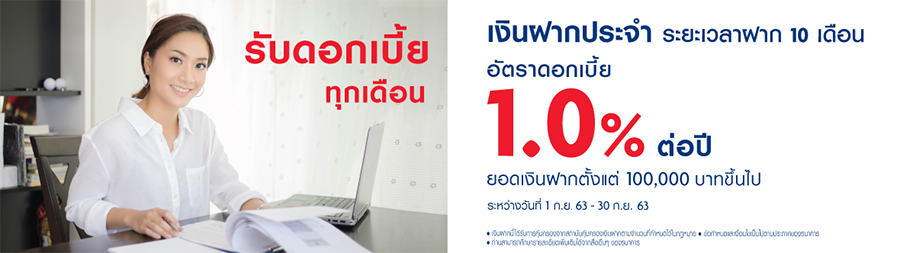 1. อัตราดอกเบี้ยพิเศษนี้สำหรับลูกค้าประเภทบุคคลธรรมดาที่มาเปิดบัญชีประเภทเงินฝากประจำ ระยะเวลาฝาก 10 เดือน ด้วยยอดเงินฝากตั้งแต่ 100,000 บาท ระหว่างวันที่ 1 - 30 กันยายน 2563 ที่ธนาคารยูโอบีทุกสาขา