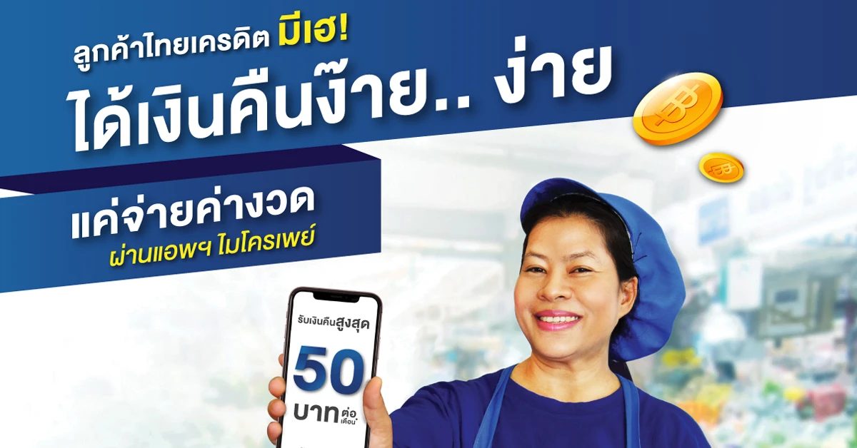ลูกค้าไทยเครดิตมีเฮ รับเงินคืนง่ายๆ สูงสุด 50 บาทต่อเดือน