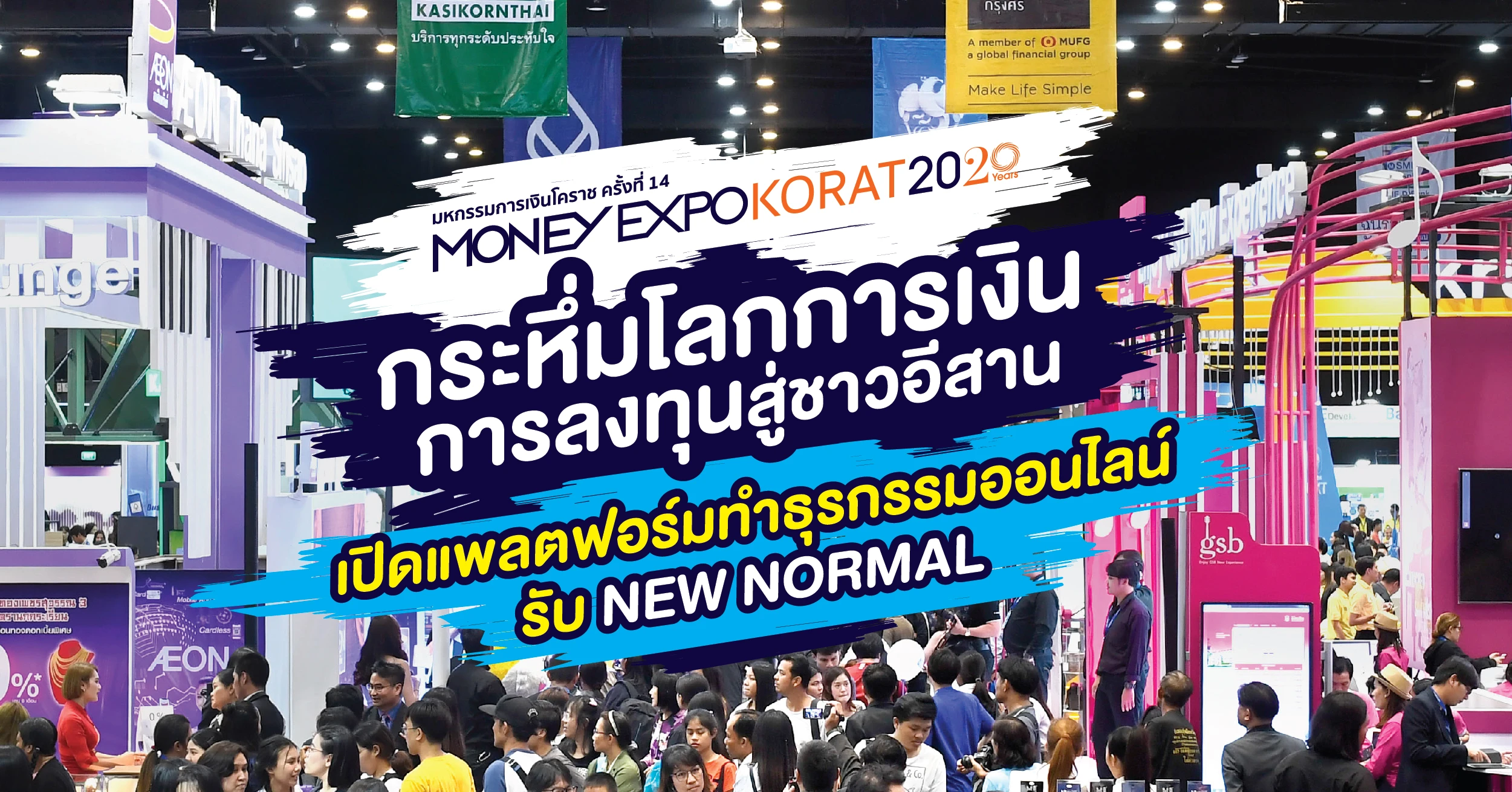วารสารการเงินธนาคาร ผู้จัดงานมหกรรมการเงิน MONEY EXPO ประกาศจัดงาน มหกรรมการเงินโคราช ครั้งที่ 14 MONEY EXPO KORAT 2020 นำบริการการเงินการลงทุนครบวงจรสู่ชาวอีสาน ภายใต้แนวคิด "Wealth Being ชีวิตที่มั่งคั่งอยู่ดีมีสุข" ระหว่างวันที่ 7-9 สิงหาคม 2563 ณ เอ็มซีซี ฮอลล์ เดอะมอลล์ โคราช จ.นครราชสีมา พร้อมเปิด "แพลตฟอร์มมหกรรมการเงิน Money Expo Online" ให้ธนาคารและสถาบันการเงินที่ร่วมงาน นำเสนอผลิตภัณฑ์ทางการเงินและการลงทุนบนแพลตฟอร์มออนไลน์ www.moneyexpoonline.com
